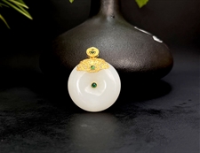和田玉18K金镶平安扣羊脂玉平安扣平平安安