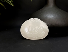 和田玉莲花挂件吊坠羊脂玉玉牌纯洁高雅