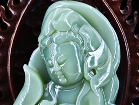 作品简介: 缘籽和田玉观音摆件,天然优质和田玉粉青玉,苏工大师设计雕刻,质地油润,光泽细腻,雕工精细,寓意护佑保平安,国检证书,七天无理由退货。