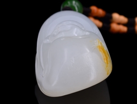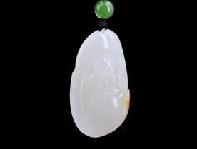 作品特色:玉质温润细腻,油润光泽,细糯老熟,质感浑厚,肉眼无结构且均匀致密洁净,稀有高端籽料羊脂玉收藏级臻品/玉质温润细腻,油润白糯老熟,结构均匀致密无杂质,天然高端羊脂玉精品;和田玉独籽料,大满皮毛孔清晰自然,形态规整,圆润饱满,大小适中//天然洒金皮/;传统经典设计,神态亲善祥和,动静神似,圆满,端庄喜庆/经典设计,造型传神,优美大气,栩栩如生,灵气十足/专业高光打磨抛光技术不漏细节,浑厚润洁,油润光亮,形,材,工集作品于一体/专业柔光技工精心细致多遍打磨,柔光层次分明,油糯,高贵典雅,意,形,材,工集作品于一体;名贵宝玉石类配珠;