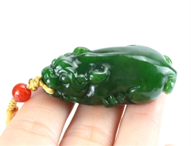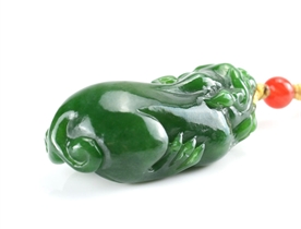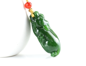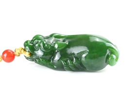 作品简介: 缘籽和田玉貔貅挂件吊坠,天然优质和田玉碧玉,苏工大师设计雕刻,质地油润,光泽细腻,雕工精细,寓意招财聚财,国检证书,七天无理由退货。