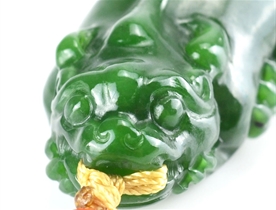 作品特色:玉质温润细腻,油糯老熟,结构及色泽均匀且致密无杂质,属高端和田玉料/出自老坑,色泽碧绿洁净,高雅靓丽,稀有菠菜绿碧玉臻品;传统经典造型设计,雕工细腻,动态流畅,表情丰富,寓意霸气/专业高光打磨抛光技术不漏细节,浑厚润洁,油润光亮,形,材,工集作品于一体;