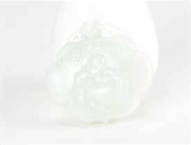 作品简介: 缘籽和田玉弥勒佛挂件吊坠,天然优质和田玉羊脂白玉,苏工大师设计雕刻,质地油润,光泽细腻,雕工精细,寓意笑口常开,国检证书,七天无理由退货。