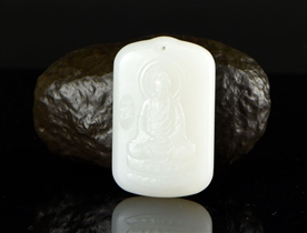 作品简介: 缘籽和田玉大日如来玉牌挂件,天然优质和田玉羊脂白玉,苏工大师设计雕刻,质地油润,光泽细腻,雕工精细,寓意生肖本命佛,国检证书,七天无理由退货。