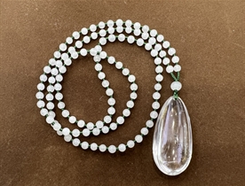 作品简介: 缘籽玉新疆水晶发晶挂件