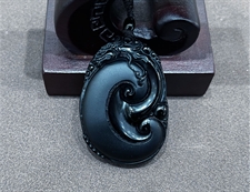 作品简介: 缘籽玉-黑曜石如意吉祥挂件