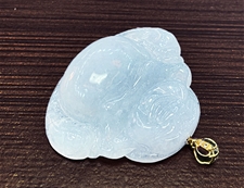 天然翡翠挂件吊坠翡翠18K金镶弥勒佛挂件吊坠笑口常开