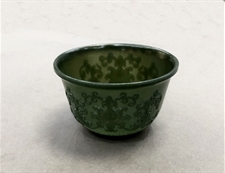 和田玉青玉器皿纯天然和田玉青玉缠技纹碗