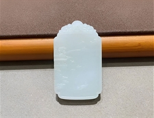 和田玉风景玉牌挂件白玉挂件平安无事