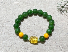 作品特色:个体圆润饱满,大小规整,色泽均匀,质地洁净细腻/琥珀蜜蜡等配珠;