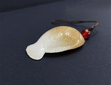 作品简介: 缘籽和田玉鱼挂件吊坠,天然优质和田玉糖羊脂玉,苏工大师设计雕刻,质地油润,光泽细腻,雕工精细,寓意平平无事,平平安安,国检证书,七天无理由退货。