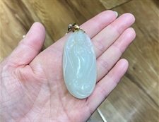 作品简介: 缘籽和田玉观音挂件吊坠,天然优质和田玉白玉,苏工大师设计雕刻,质地油润,光泽细腻,雕工精细,寓意健康平安,国检证书,七天无理由退货。