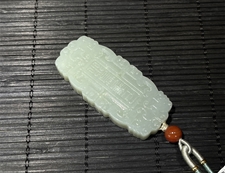 作品简介: 缘籽和田玉仿古玉牌玉牌挂件,天然优质和田玉青白玉籽料,苏工大师设计雕刻,质地油润,光泽细腻,雕工精细,寓意吉祥如意,国检证书,七天无理由退货。