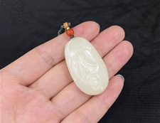 作品简介: 缘籽和田玉莲花挂件吊坠,天然优质和田玉白玉,苏工大师设计雕刻,质地油润,光泽细腻,雕工精细,寓意纯洁高雅,国检证书,七天无理由退货。