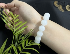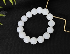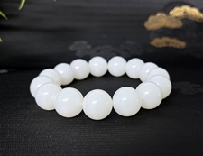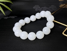 作品简介: 和田玉手串选用纯天然上等和田玉羊脂玉原料,颗颗精选,晶莹圆润饱满,和田玉羊脂玉15mm圆珠手串质地纯净,油润光泽细腻