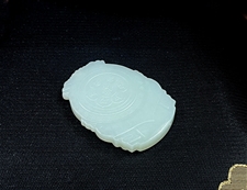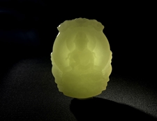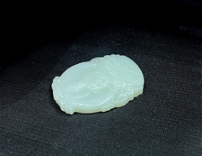 作品特色:玉质温润细腻,油糯老熟,结构及色泽均匀且致密无杂质,属高端和田玉料/白糯飘青,色泽均匀纯正,清雅高贵,清白一身,纯天然和田玉青白玉精品;知名玉雕师作品/传统经典设计,神态亲善祥和,动静神似,圆满,端庄喜庆;
