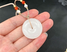 作品简介: 缘籽和田玉平安扣挂件吊坠,天然优质和田玉羊脂玉,苏工大师设计雕刻,质地油润,光泽细腻,雕工精细,寓意平平安安,国检证书,七天无理由退货。
