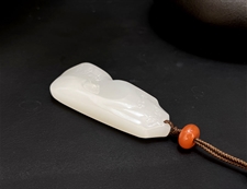 作品简介: 缘籽和田玉悟道挂件吊坠,天然优质和田玉羊脂玉,苏工大师设计雕刻,质地油润,光泽细腻,雕工精细,寓意修身养性,国检证书,七天无理由退货。