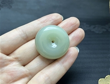 作品简介: 缘籽和田玉平安扣挂件吊坠,天然优质和田玉青玉,苏工大师设计雕刻,质地油润,光泽细腻,雕工精细,寓意平平安安,国检证书,七天无理由退货。