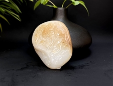 作品特色:玉质温润细腻,油糯老熟,结构及色泽均匀且致密无杂质,属高端和田玉料/纯天然和田玉白玉精品/天然和田玉糖玉精品;知名玉雕师作品/简洁清爽,自然生动完美;