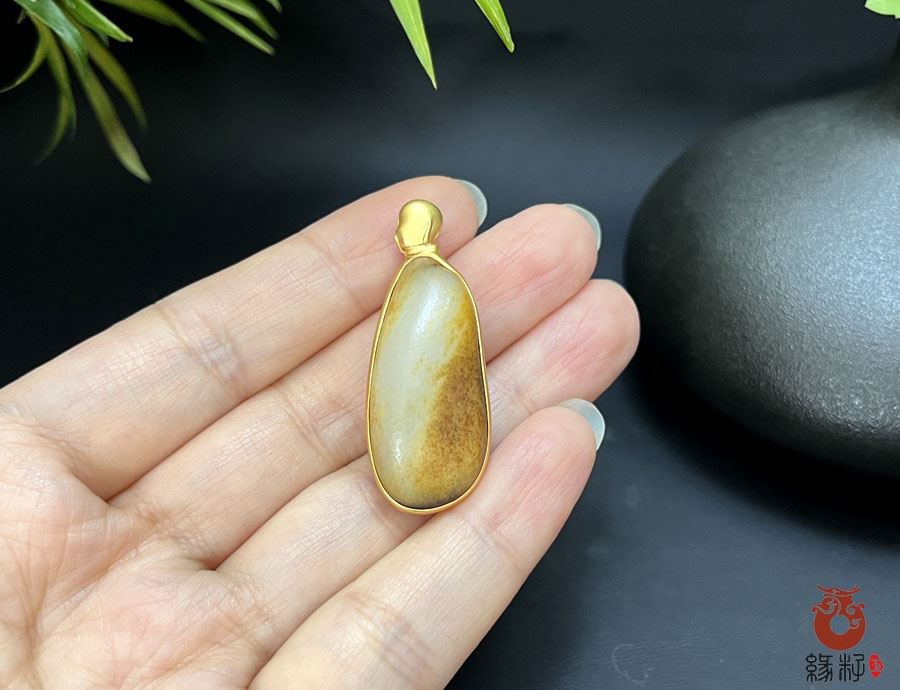 缘籽金镶和田玉籽料原石吊坠