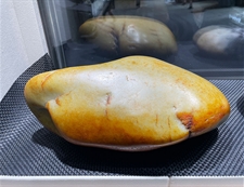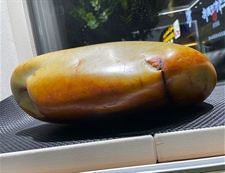作品特色:和田玉独籽料,大满皮毛孔清晰自然,形态规整,圆润饱满,大小适中;