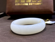 作品简介: 缘籽玉手镯新疆和田玉羊脂玉手镯,纯天然上等和田玉,苏工大师制作,缘籽玉羊脂玉手镯质地油润光泽细腻,设计完美,雕工精细,国检证书