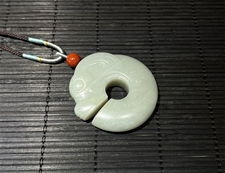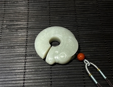 作品简介: 缘籽和田玉玉猪龙玉佩挂件,天然优质和田玉青白玉籽料,苏工大师设计雕刻,质地油润,光泽细腻,雕工精细,寓意吉祥如意,国检证书,七天无理由退货。